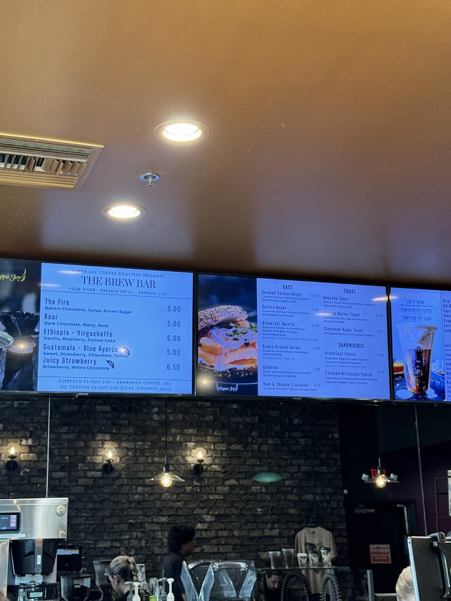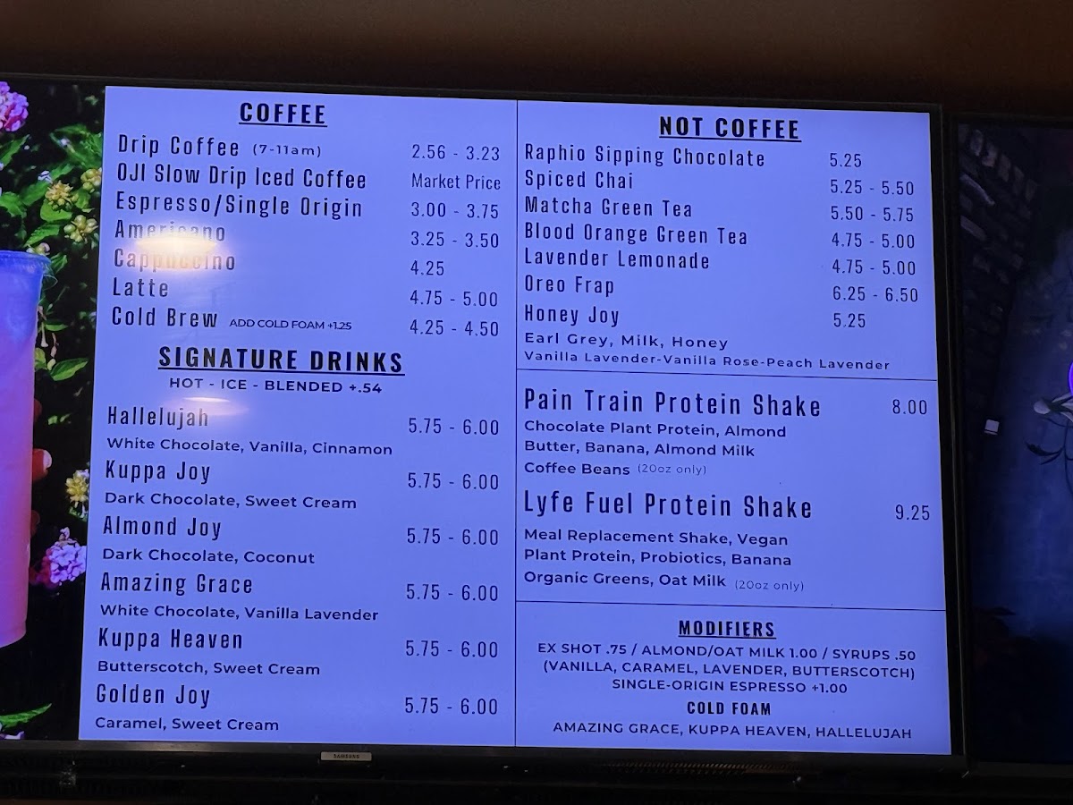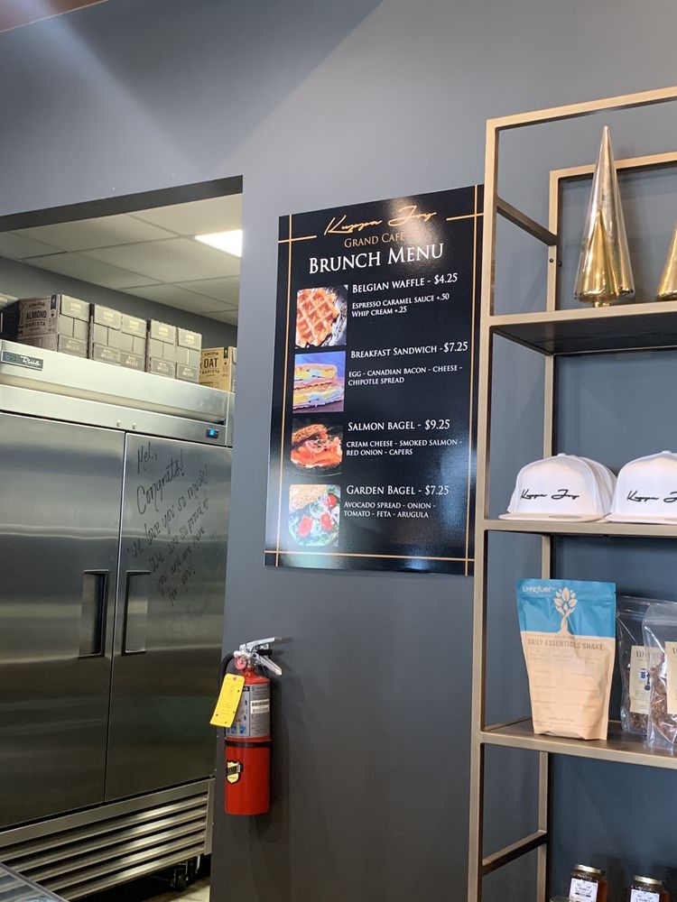 At Kuppa Joy Coffee House - Grand Cafe in Fresno, CA, the menu offers an inviting mix of drinks, pastries, food, and unique merchandise, perfect for a relaxing and flavorful experience. Whether you're in the mood for something blended or hot, there's a wide variety to choose from. The Pumpkin Pie Blended and Peppermint Mocha Blended are particularly popular, along with the Pumpkin Chai Blended-all of which are served in generous 20oz portions. Hot drink lovers can enjoy classics like the Americano Refill and Mocha or indulge in the comforting Spiced Chai and Peppermint Hot Chocolate. For those seeking something extra special, the Amazing Grace is a standout.