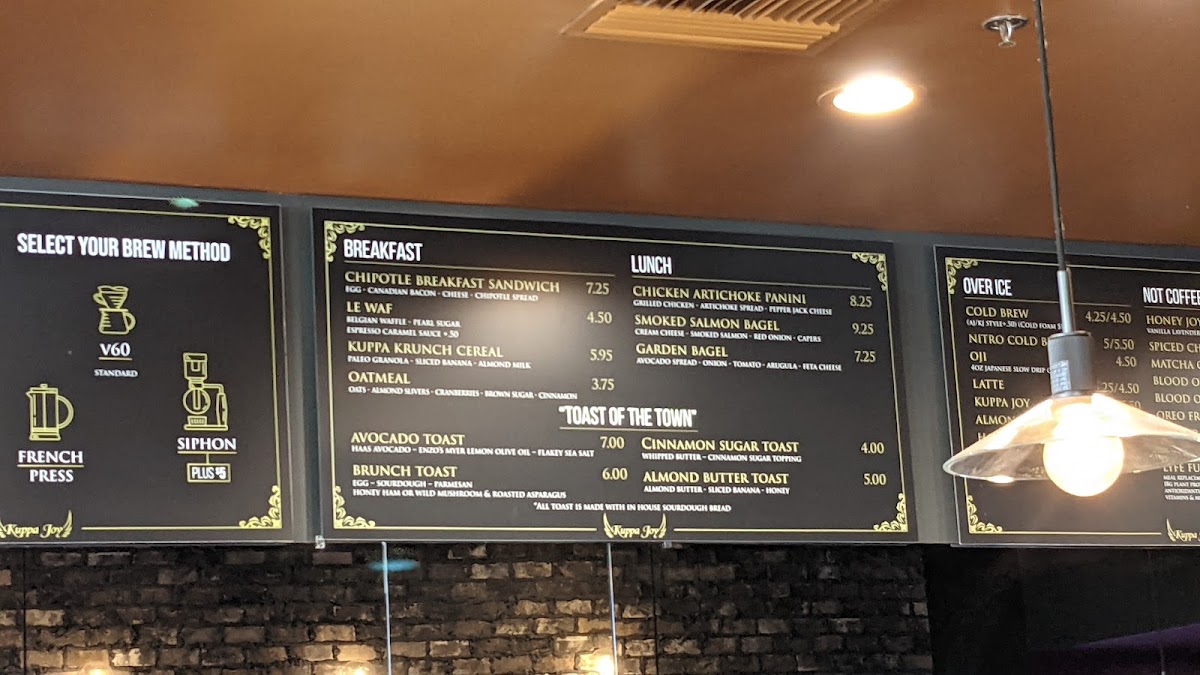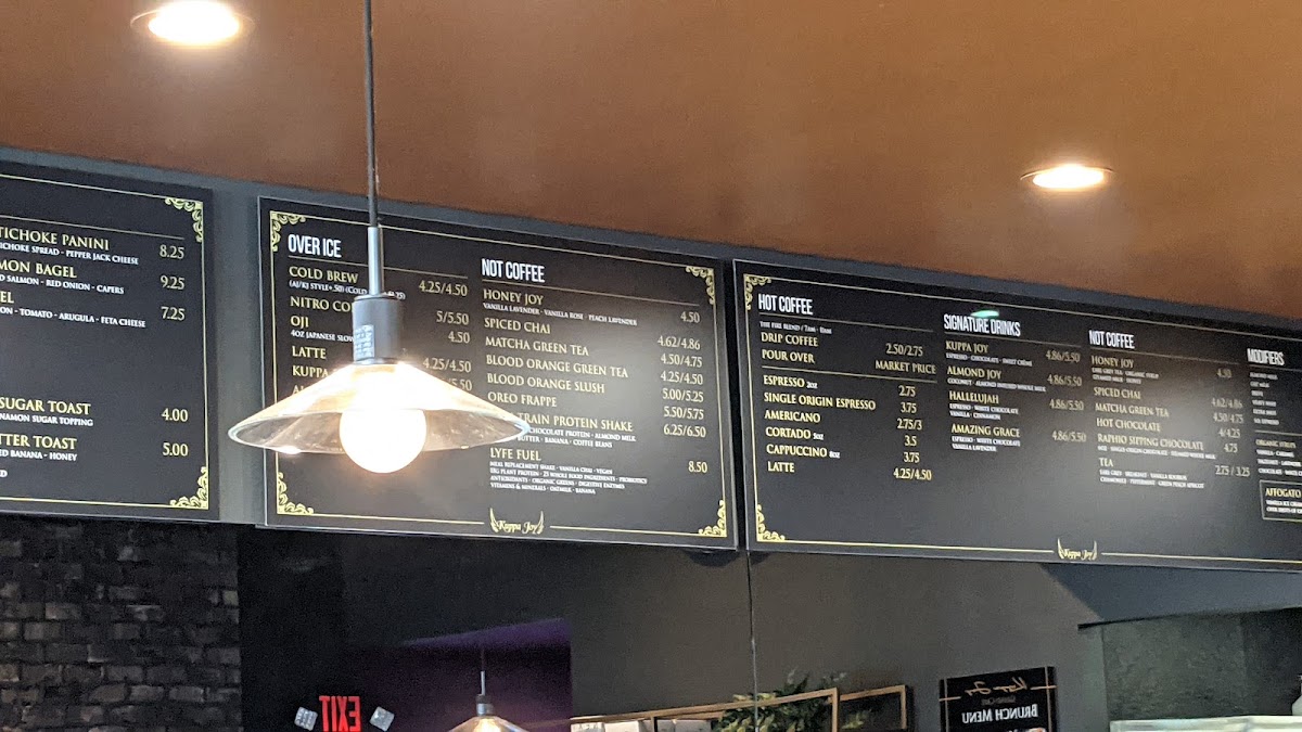 Merchandise options, including Christmas Tumblers and the Kuppa Joy Wings T-Shirt (Grey), offer a great way to take a piece of the café home with you. Overall, the menu at Kuppa Joy Coffee House is a delightful mix of comforting classics, seasonal flavors, and unique beverages, making it the perfect spot for coffee enthusiasts and food lovers alike.